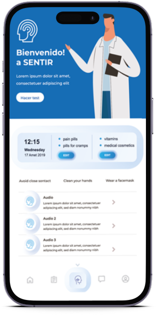 Estamos orgullosos de presentar SENTIR, una aplicación diseñada para evaluar y mejorar las habilidades auditivas. Creemos que todos merecen una audición clara y enriquecedora, y estamos emocionados de que nos acompañes en este viaje de transformación auditiva.